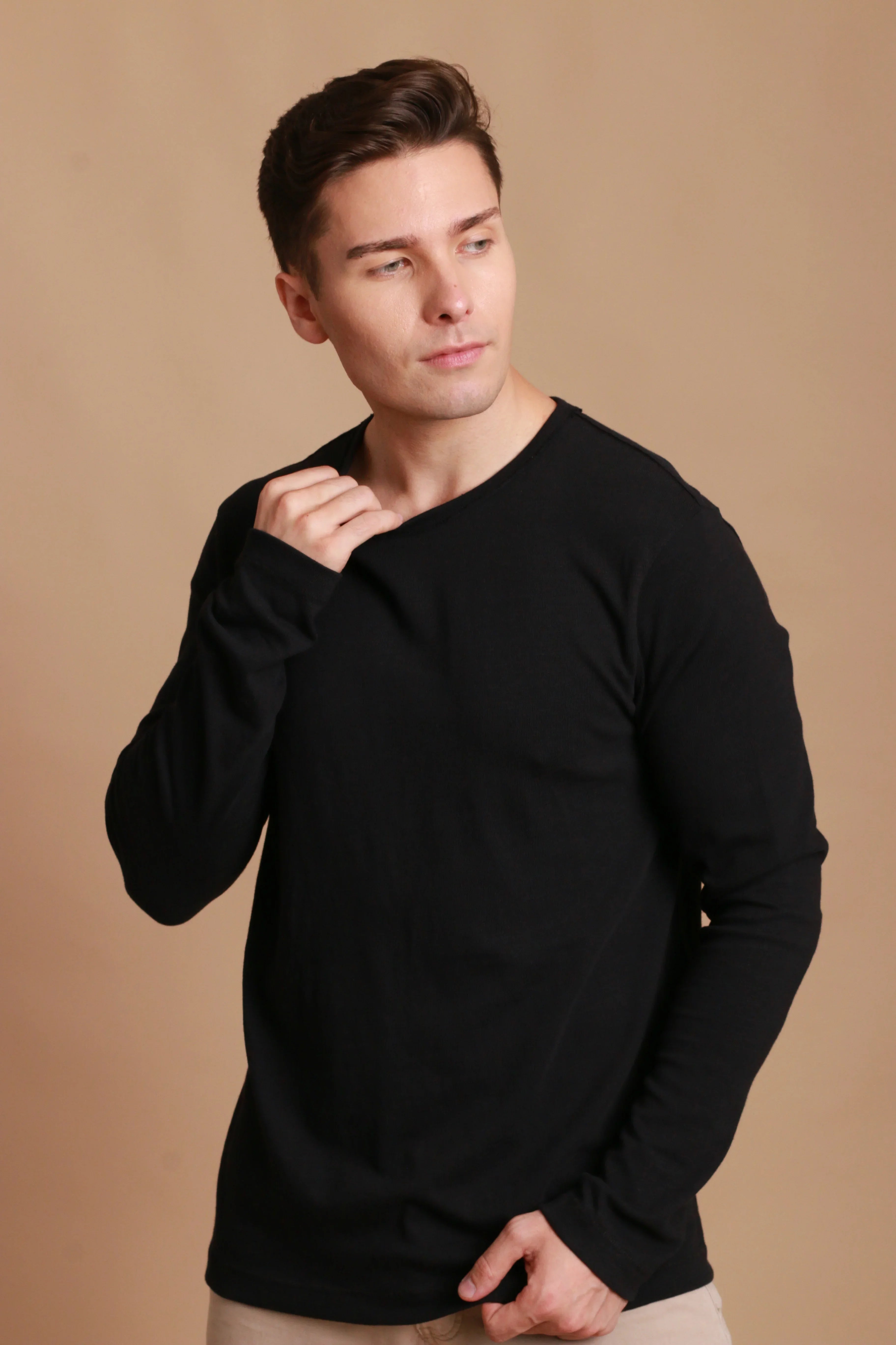 Chemise à manches longues et col rond pour hommes