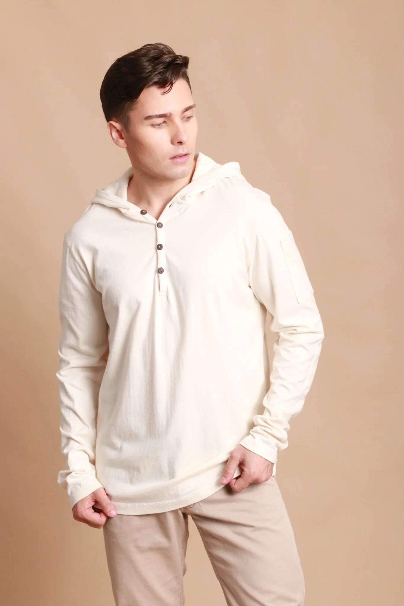 Chemise à manches longues Henley pour hommes