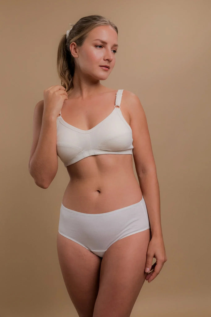 This lightweight GOTS-Certified Waist Brief offers full coverage and breathable comfort, helping prevent irritation and maintain skin health all day.